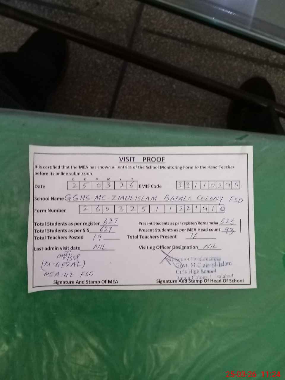 | EMIS Code: 33110294 | Name of School: GGHS MC ZIA-UL-ISLAM BATALA COLONY | |||