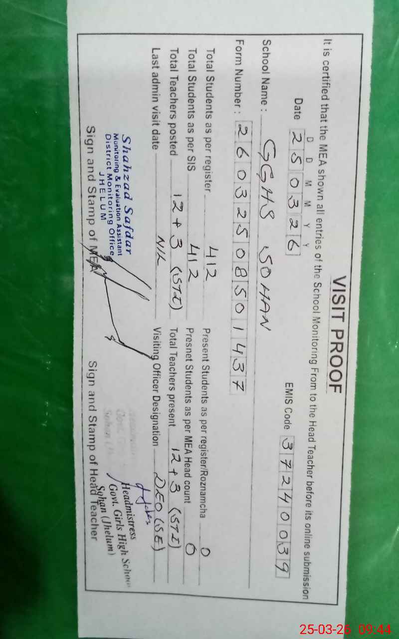 | EMIS Code: 37240039 | Name of School: GGHS SOHAN | |||