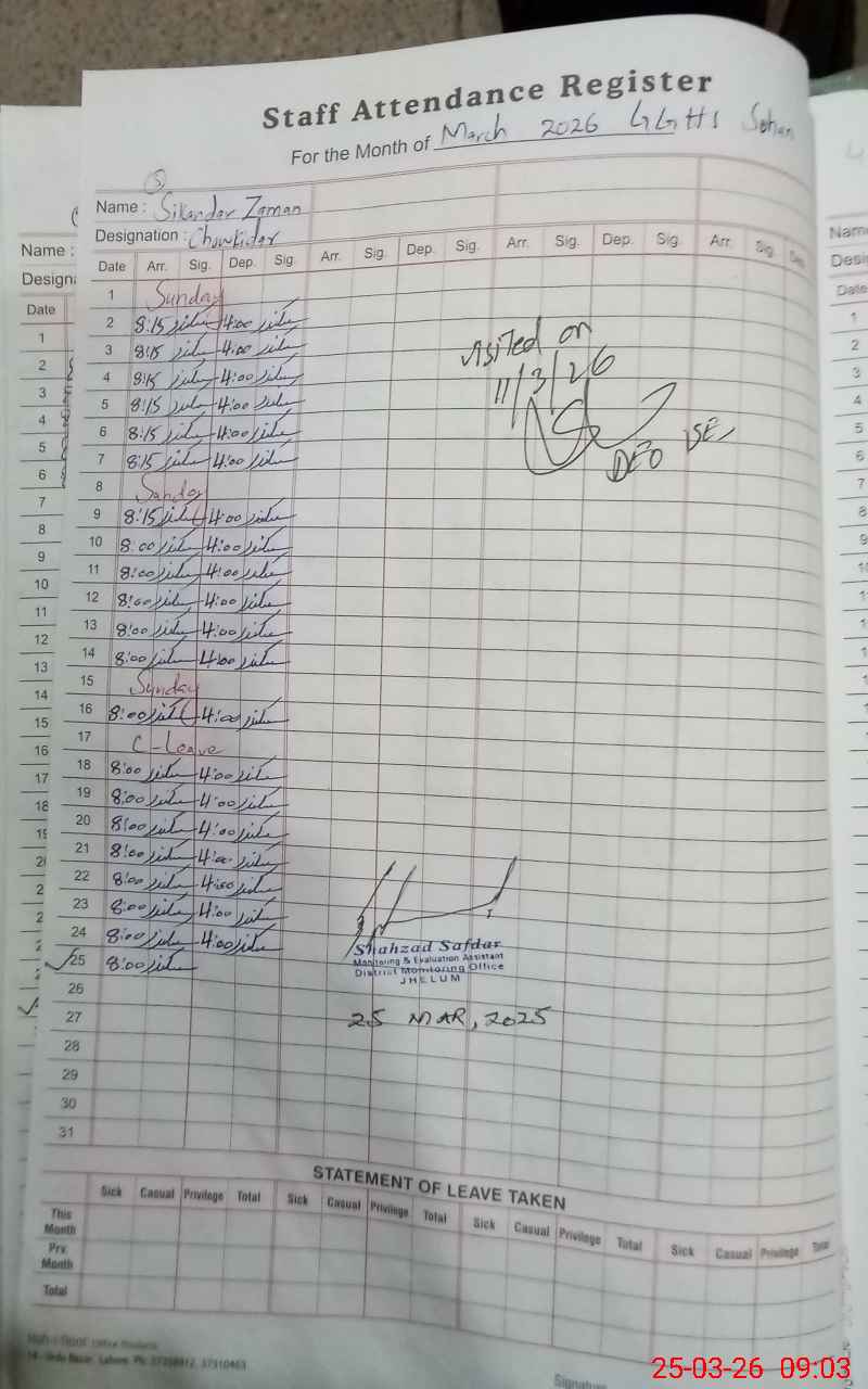| Attendance Register | Head Teacher | MEA with School | Visit Proof |