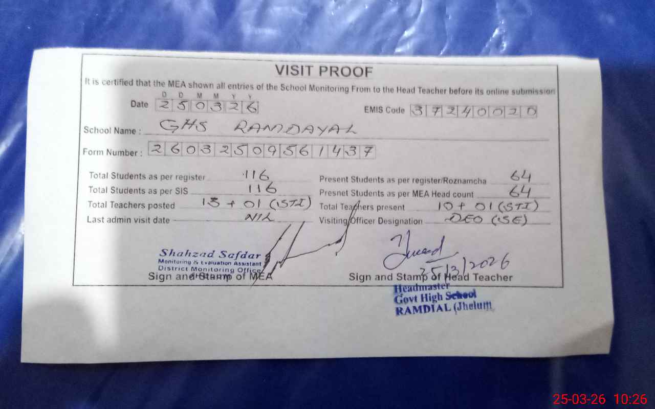 | EMIS Code: 37240020 | Name of School: GHS RAMDAYAL | |||