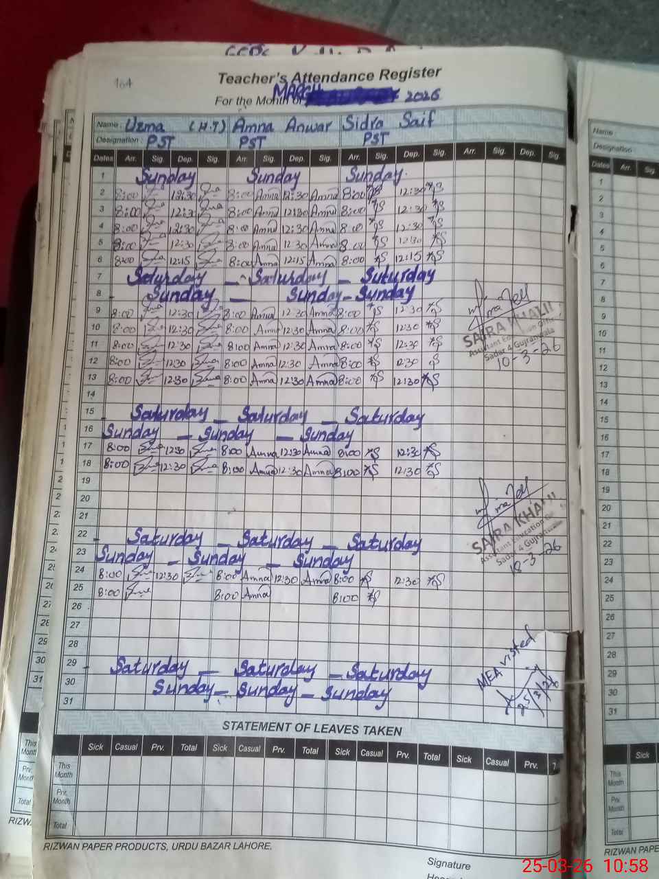 | Name: UZ**** Designation: (School Headmaster's/Headmistress's) PST SCI MATH Phone/Cell Number: 03**** |