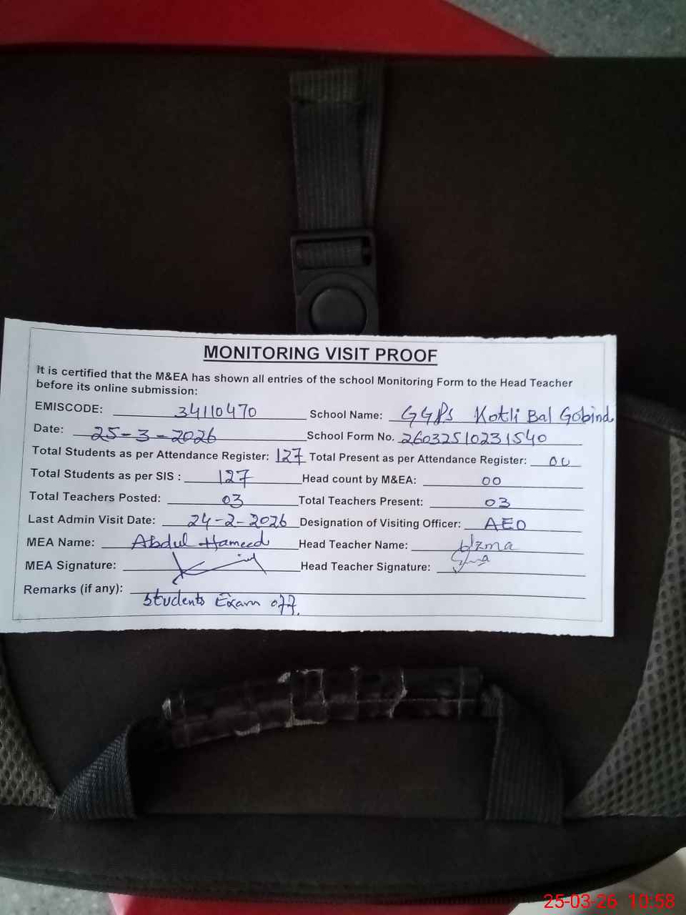 | EMIS Code: 34110470 | Name of School: GGPS KOTLI BAL GOBIND | |||