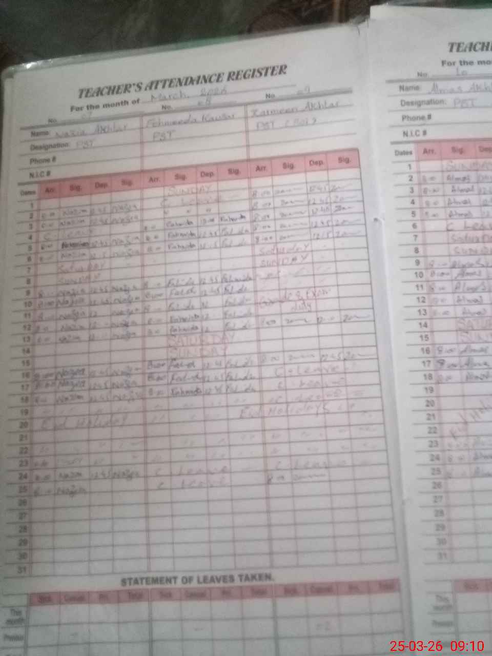 | 33**** | Pa**** | EST Urdu | Regular | 0 | 0 | 0 | 0 | 0 | 0 | 0 | 0 | 0 | Absent (Un-Authorized) |