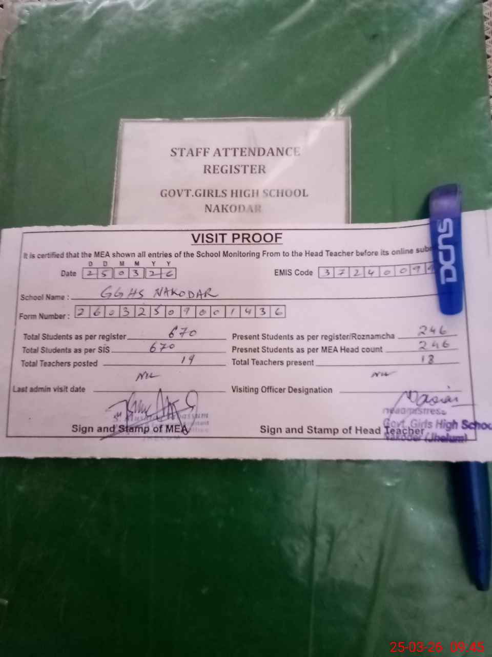 | EMIS Code: 37240099 | Name of School: GGHS NAKODAR | |||