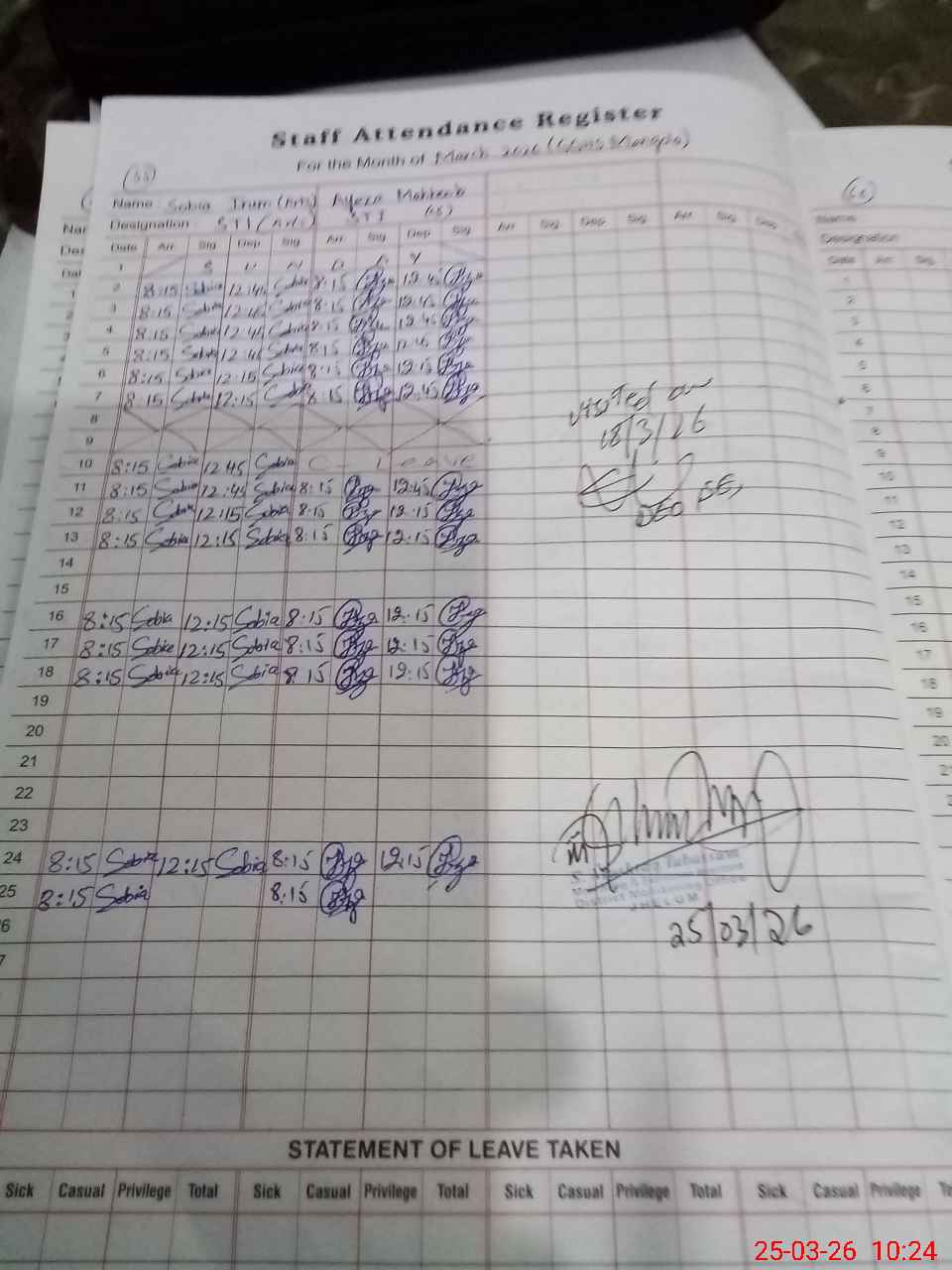 | Name: Sh**** Na**** Designation: (School Headmaster's/Headmistress's) Headmistress Phone/Cell Number: 03**** |