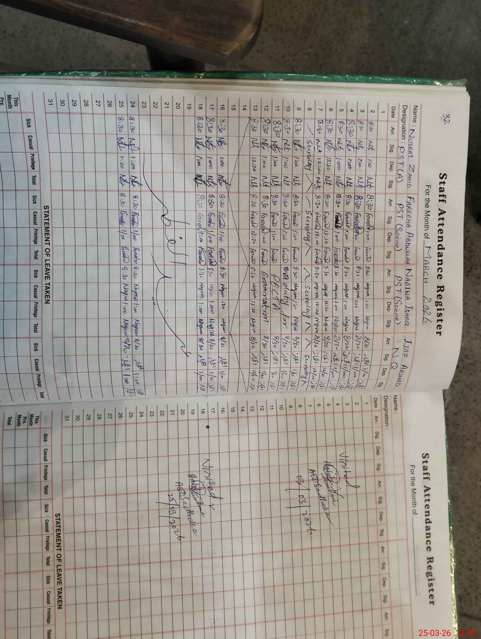 | Leave | Duty | Absent | Maternity | Medical | Ex- Pak |