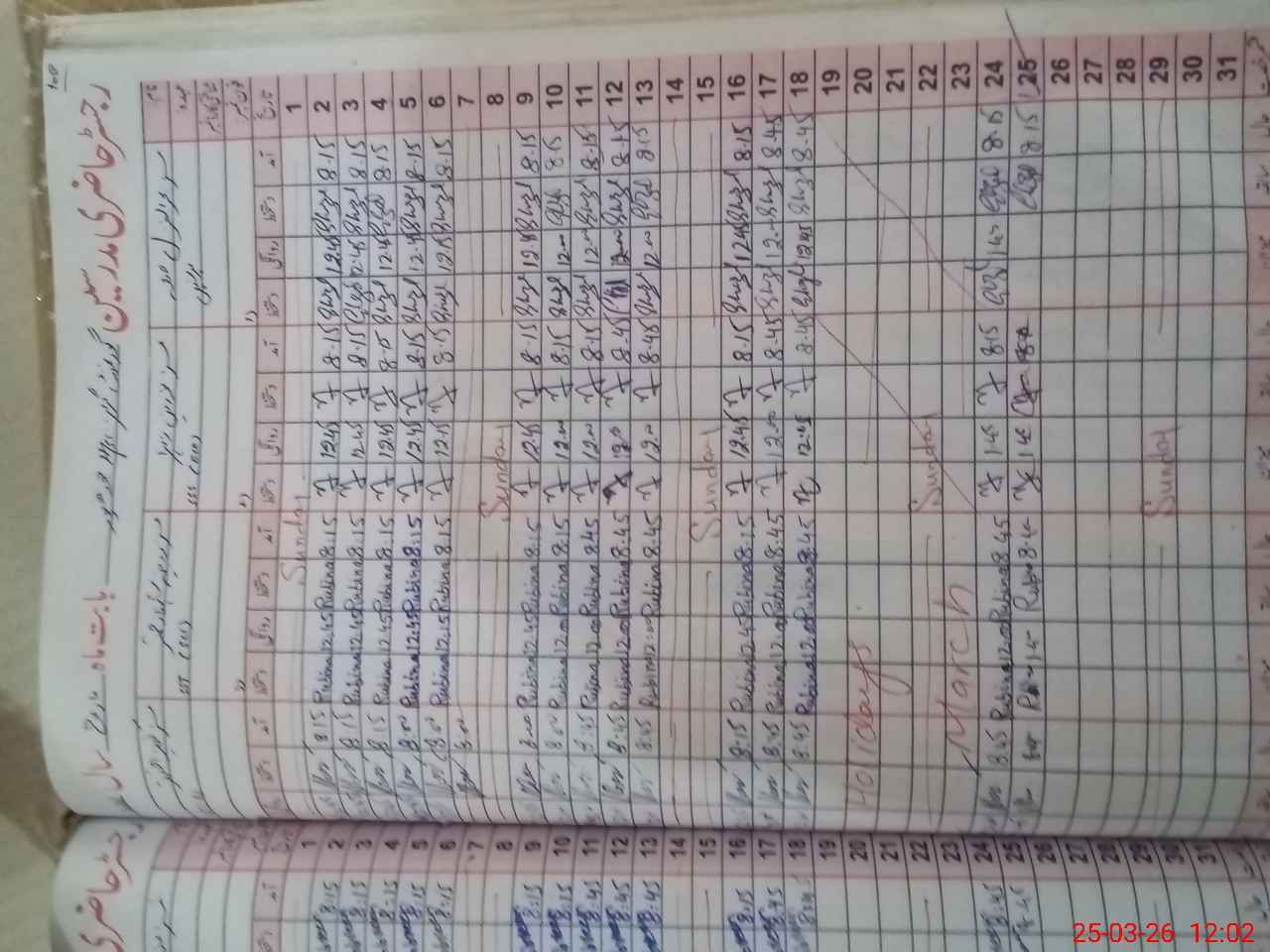 | No. of Students Present - Male | 0 | 0 | 0 | 0 | 0 | 0 | 0 | 0 | 0 | 0 | 0 | 0 | 0 | 0 | 0 | |