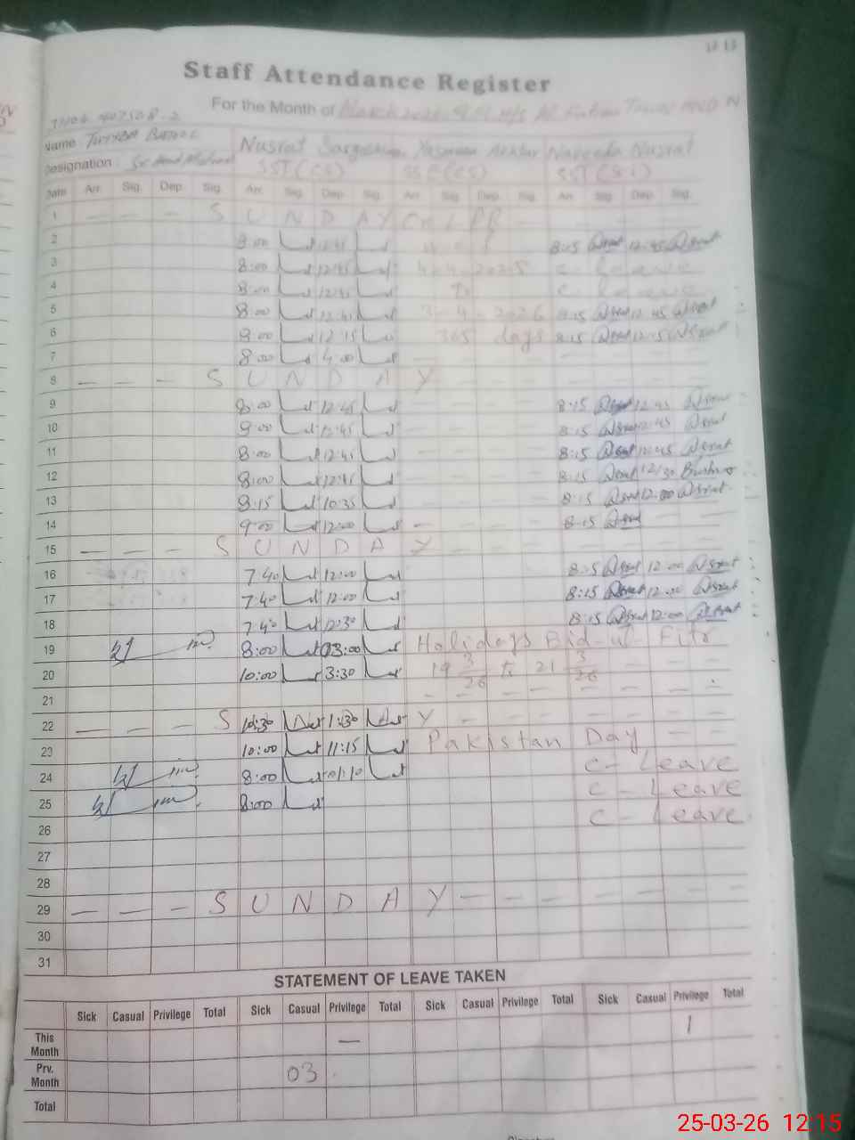 | 31**** | Na**** Nu**** | SST Science | Regular | 0 | 0 | 0 | 0 | 0 | 0 | 0 | 0 | 0 | Casual |