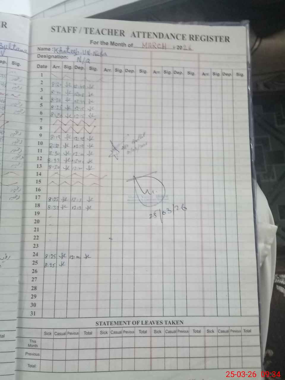 | 37**** | Ta**** Ra**** | EST General Arts | Regular | 1 | 0 | 0 | 0 | 0 | 0 | 0 | 0 | 1 | Casual |