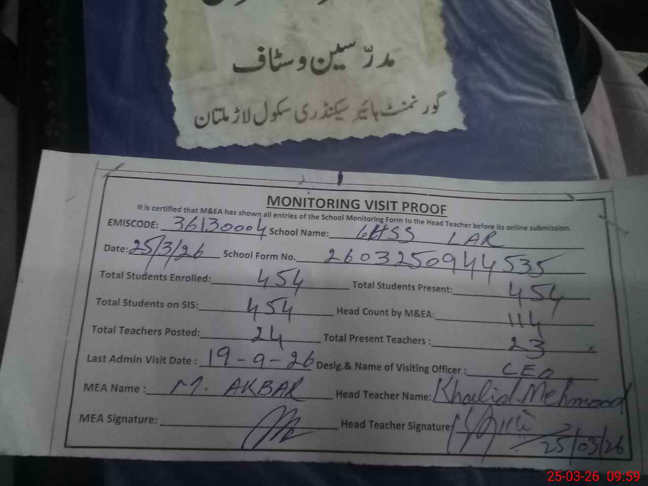 | EMIS Code: 36130004 | Name of School: GHSS LAR MULTAN | |||