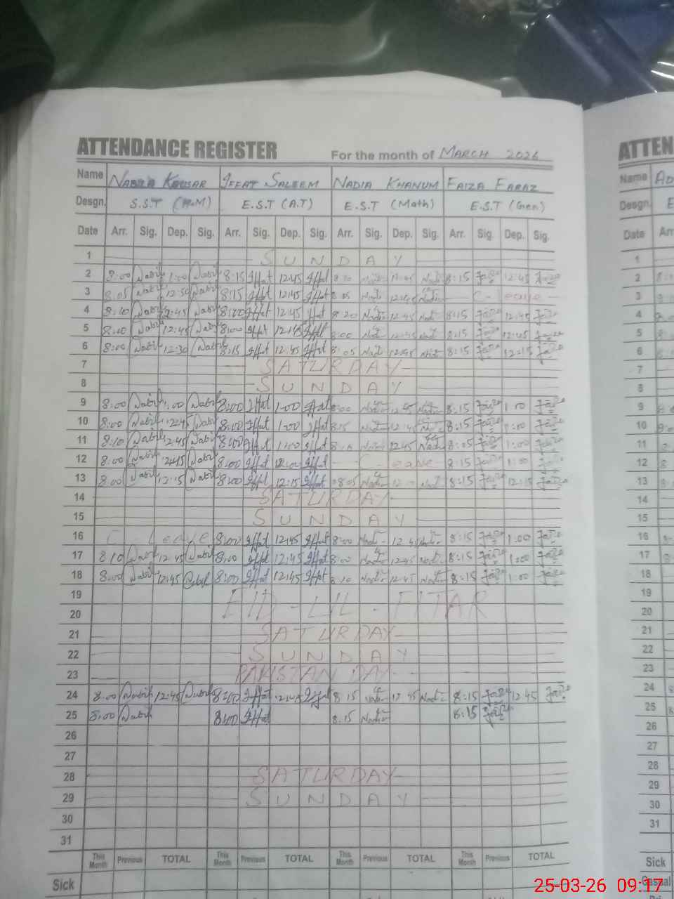 | Remarks (Use Separate Page if Required): ECE Nursary One Two Three four and 5th class Exam off today paint work is required | |||||