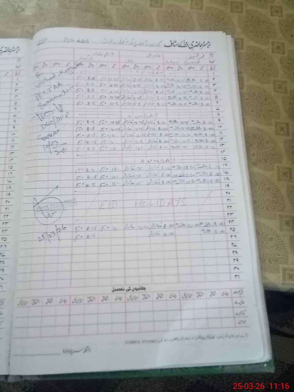 | CNIC | Full Name | Designation | R/C | Absence During Last Calender Month |
