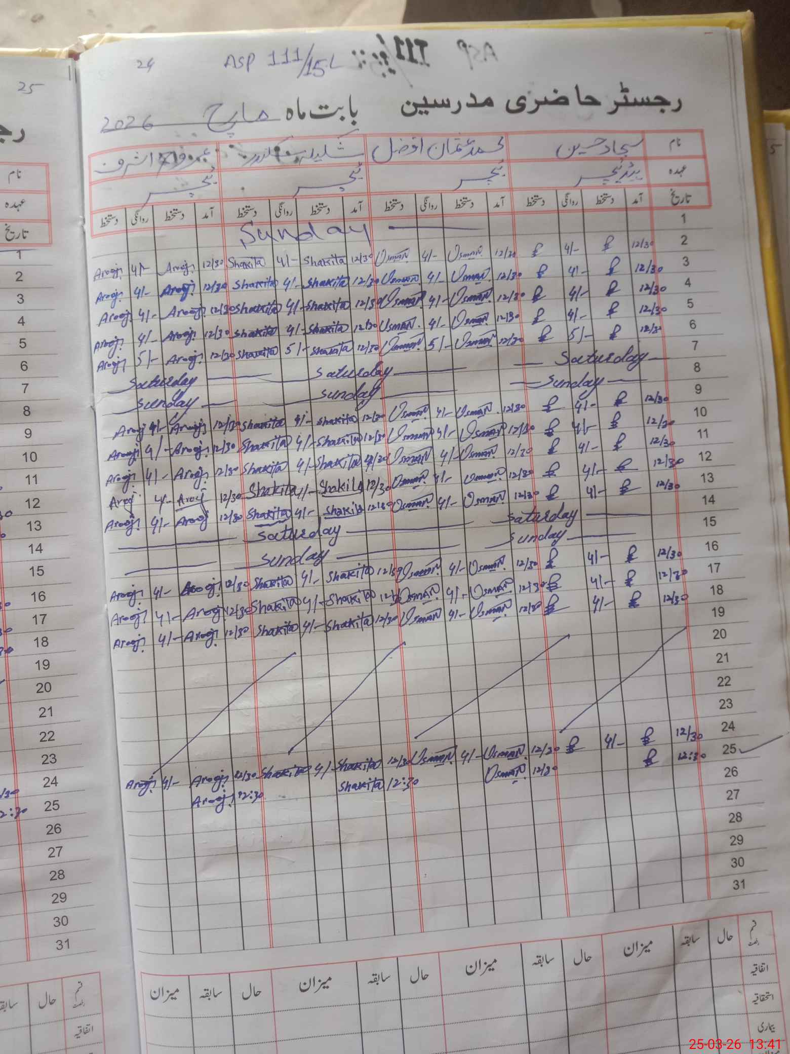 | CNIC | Full Name | Designation | R/C | Absence During Last Calender Month |