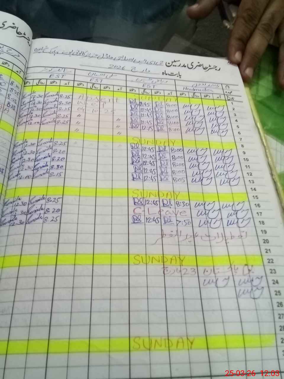| CNIC | Full Name | Designation | R/C | Absence During Last Calender Month |