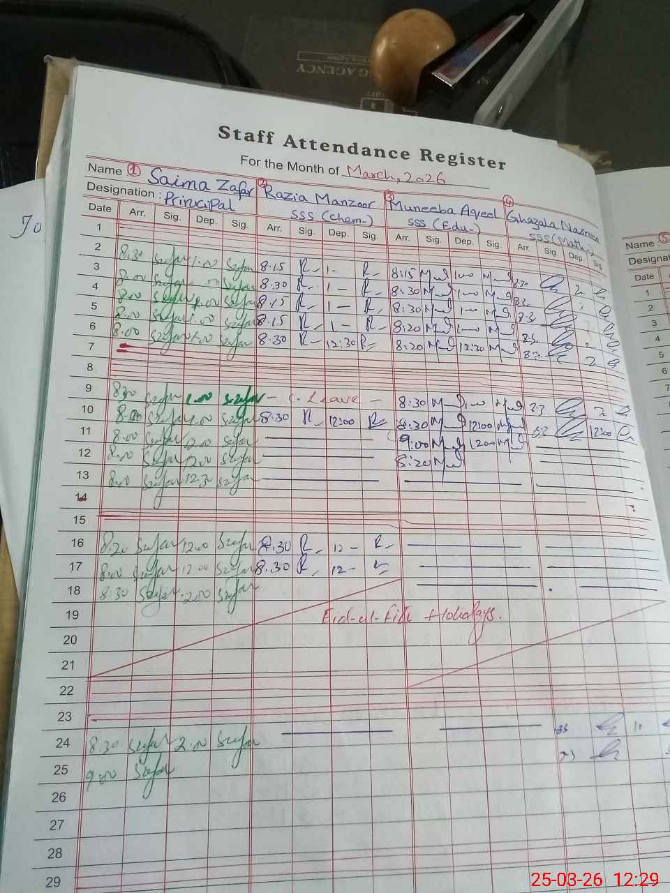 | Remarks (Use Separate Page if Required): sst Bushra Nawaz found absent since 15 November 2025 | |||||