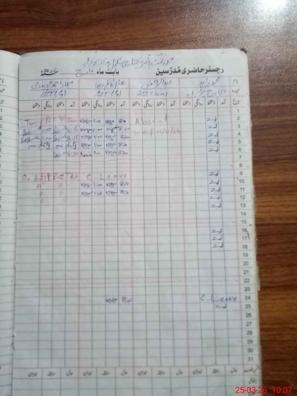 | Leave | Duty | Absent | Maternity | Medical | Ex- Pak |
