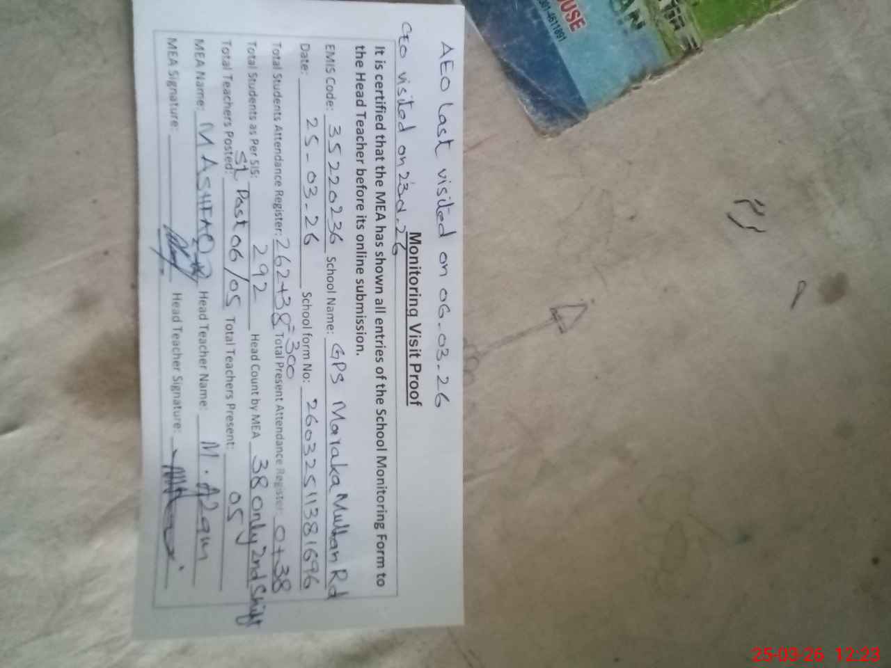 | EMIS Code: 35220236 | Name of School: GPS MARAKA MULTAN ROAD | |||