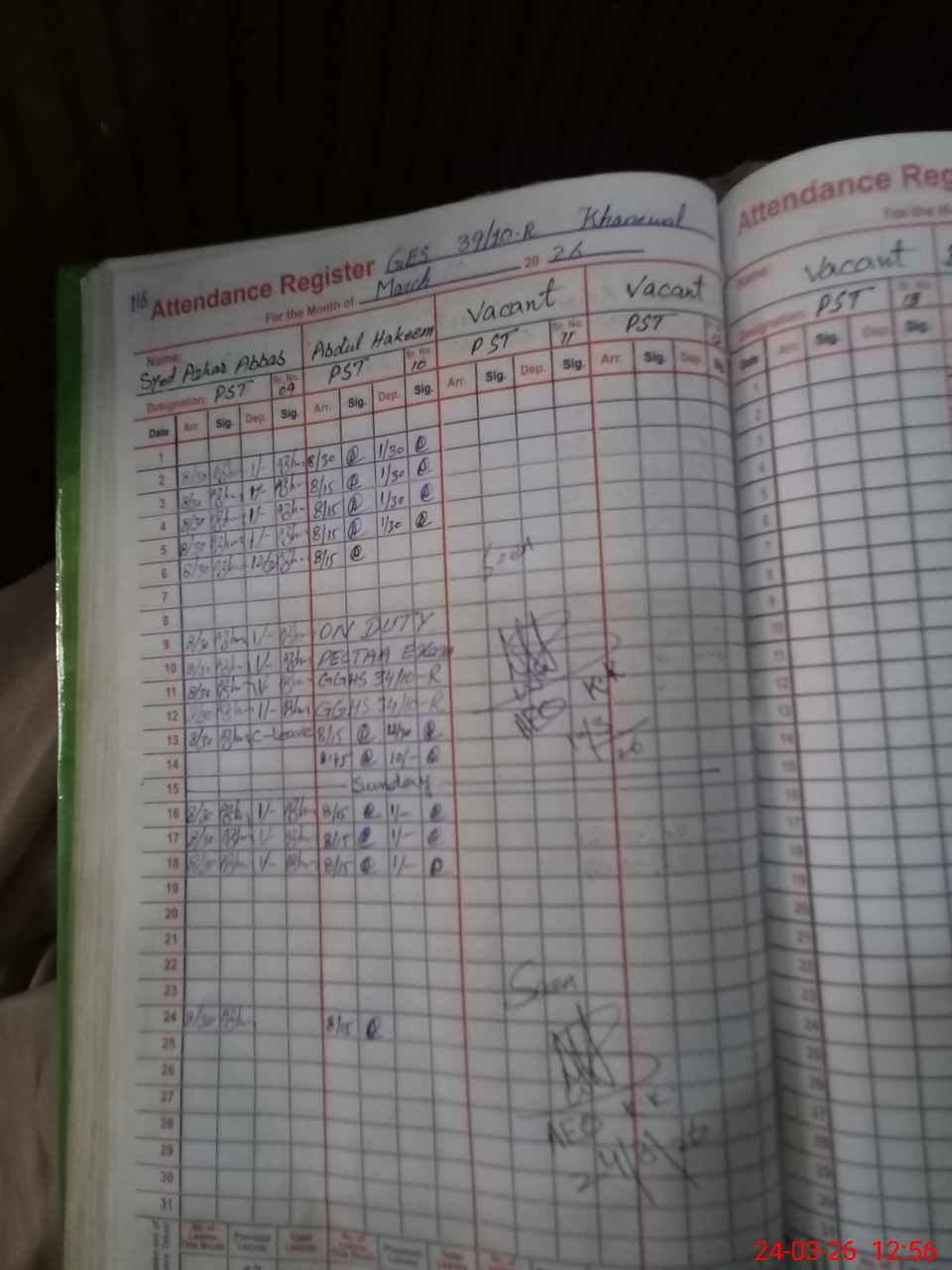 | Leave | Duty | Absent | Maternity | Medical | Ex- Pak |