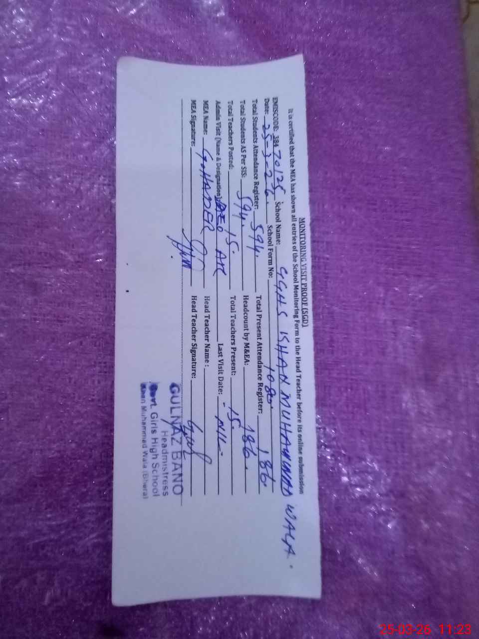| EMIS Code: 38470125 | Name of School: GGHS KHAN MUHAMMAD WALA | |||