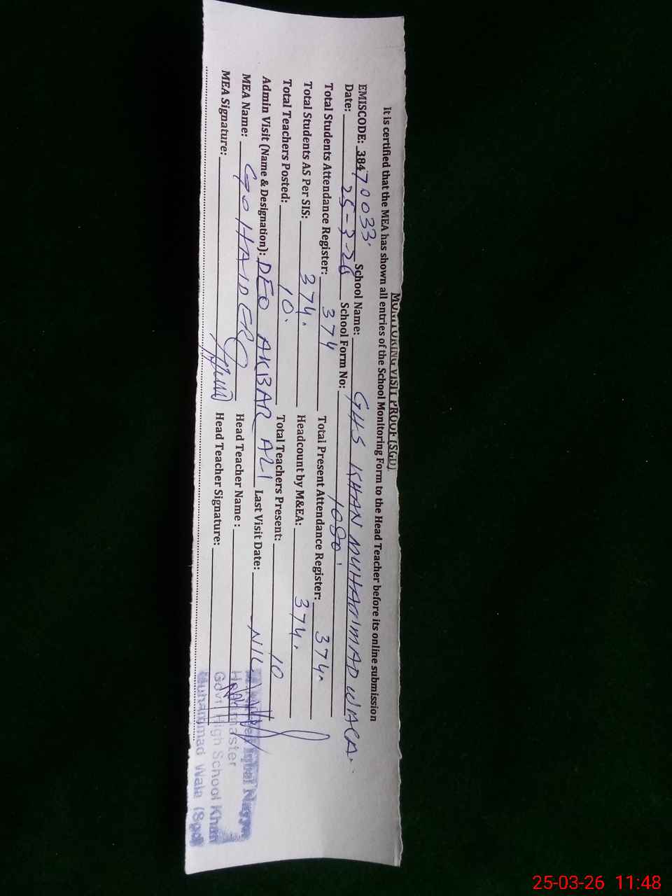 | EMIS Code: 38470033 | Name of School: GHS KHAN MUHAMMAD WALA | |||