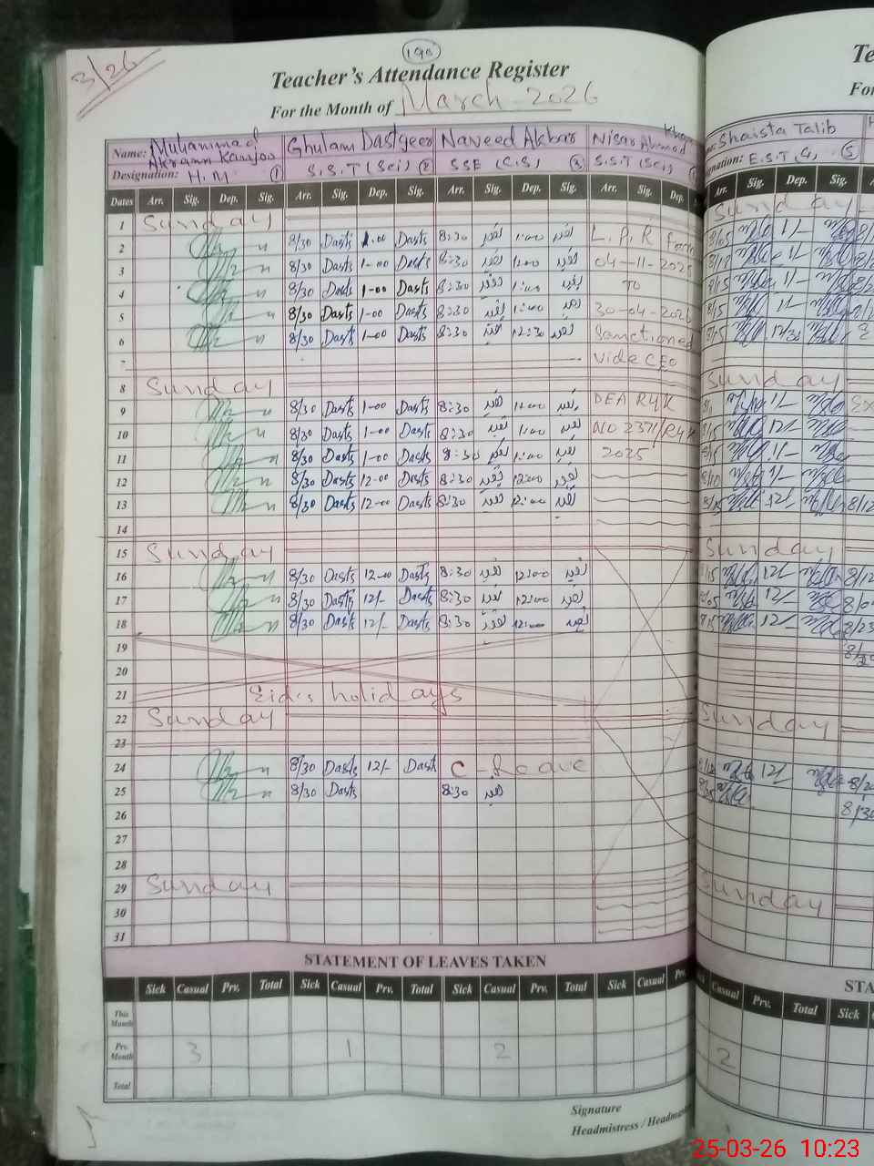 | 31**** | Gh**** Qa**** | PST Arts | Regular | 1 | 0 | 0 | 0 | 0 | 0 | 0 | 0 | 1 | Casual |