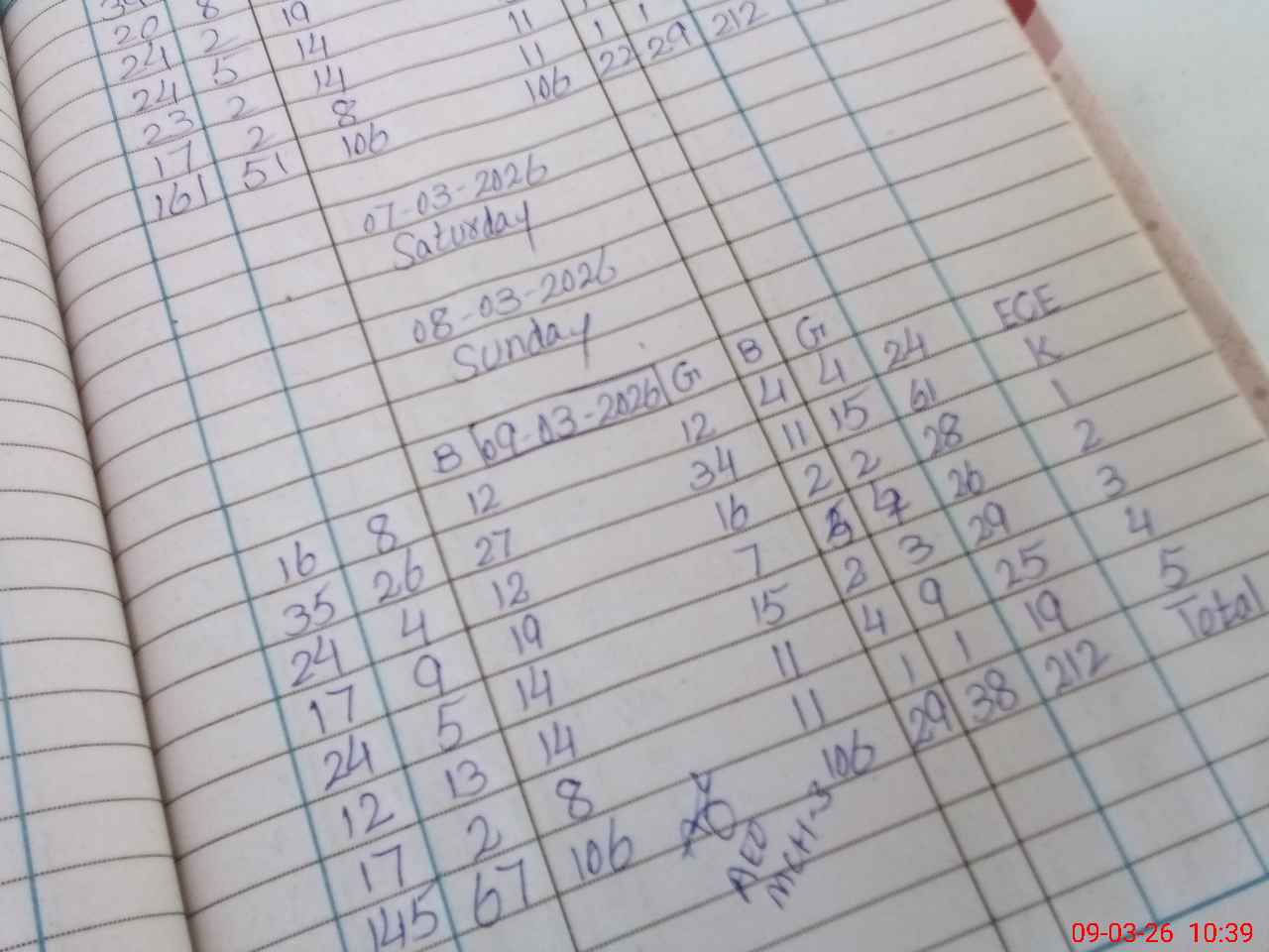| ECE | Un-admt | K | 1 | 2 | 3 | 4 | 5 | Total | ||||||||