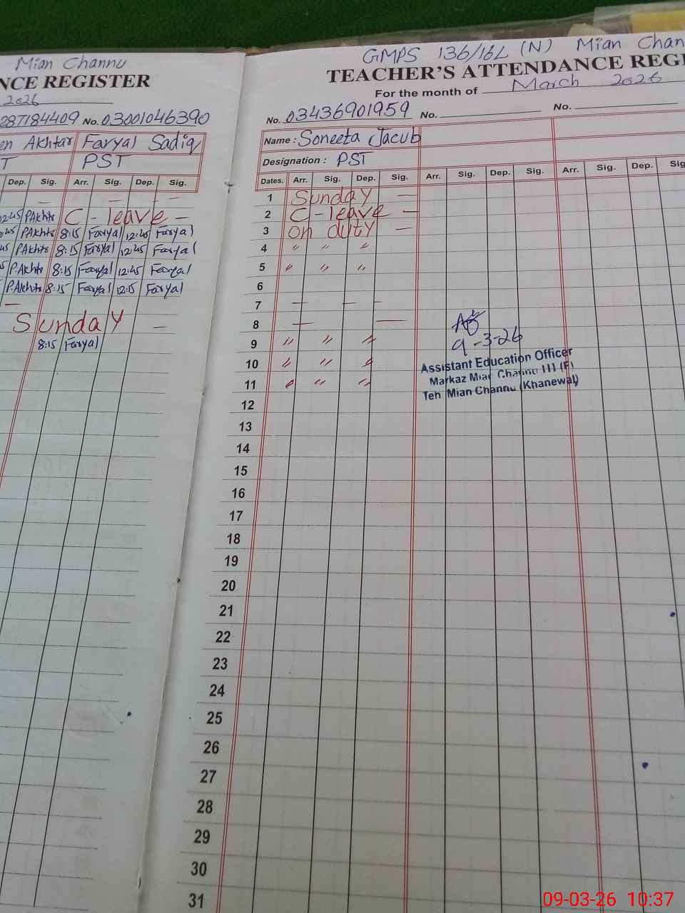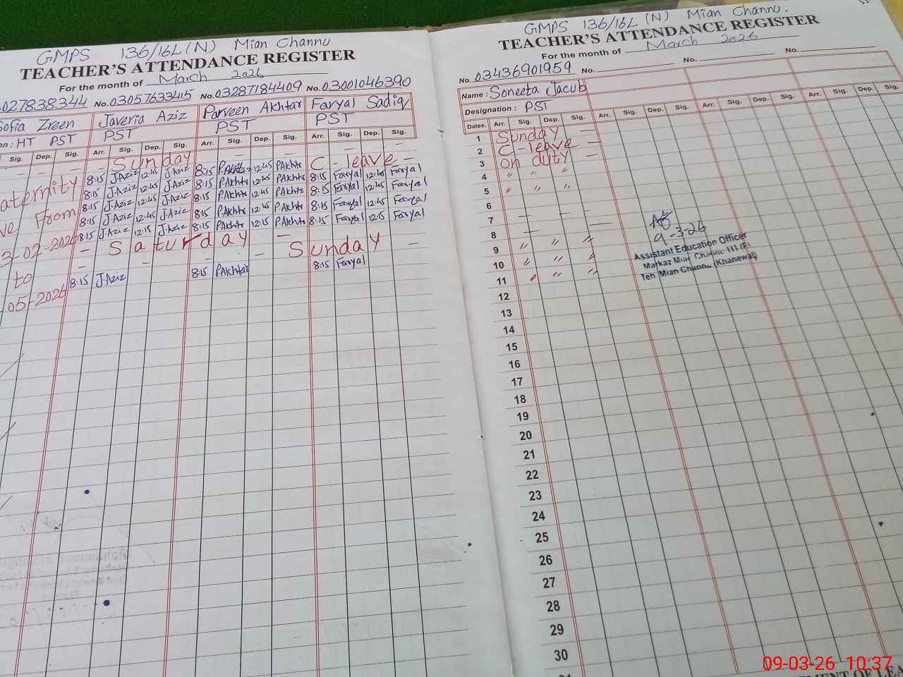 | EMIS Code: 36430289 | Name of School: GMPS 136/16-L NORTH, P/O 135/16-L STUNTZABAD, MIAN CHANNU | |||
