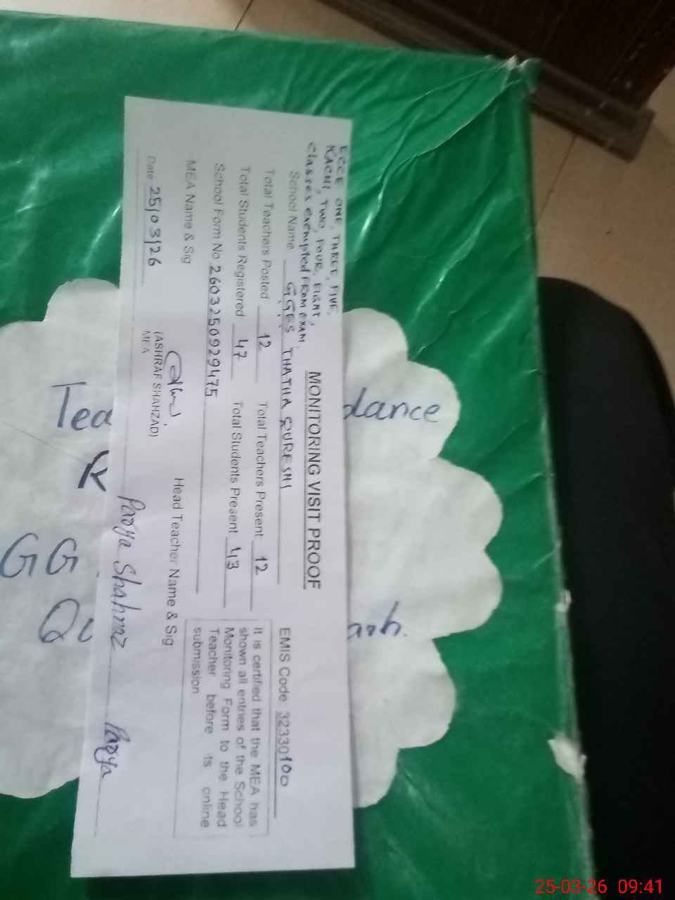 | EMIS Code: 32330100 | Name of School: GGES THATHA QURESHI | |||