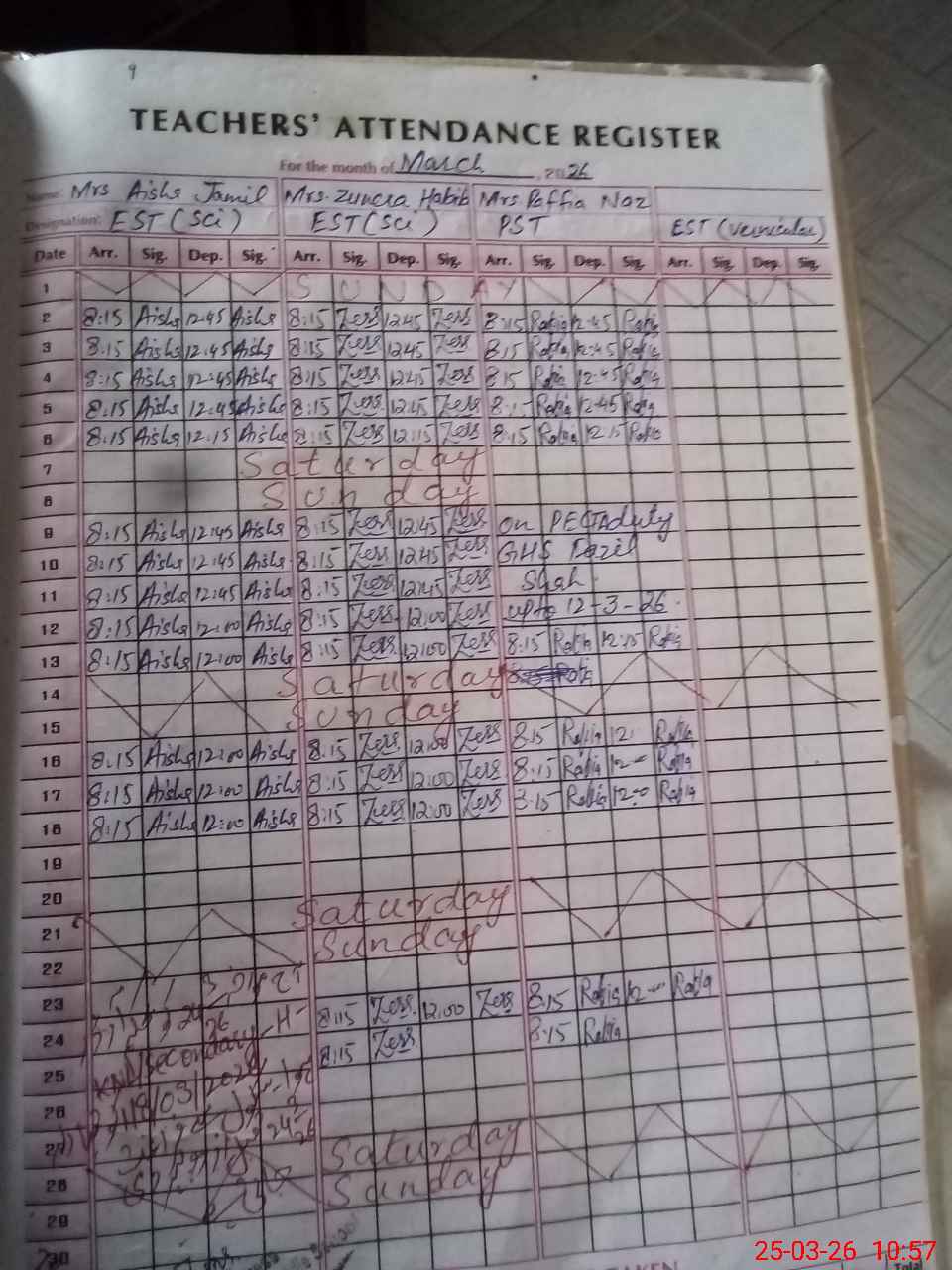 | Remarks (Use Separate Page if Required): primary portion students were on exam. off student attendance taken from attendance register | |||||