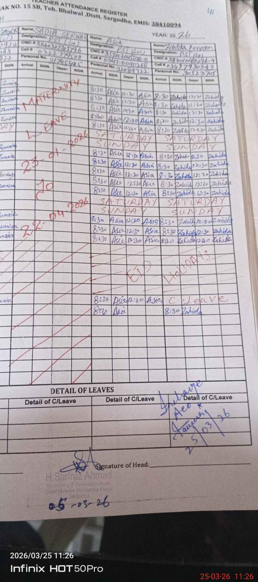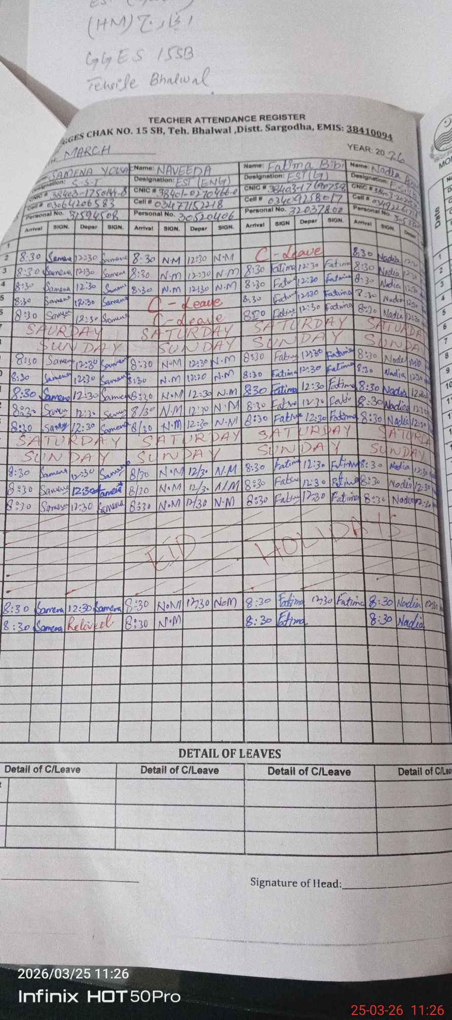 | Name: SA**** YO**** Designation: (School Headmaster's/Headmistress's) HM Phone/Cell Number: 03**** |
