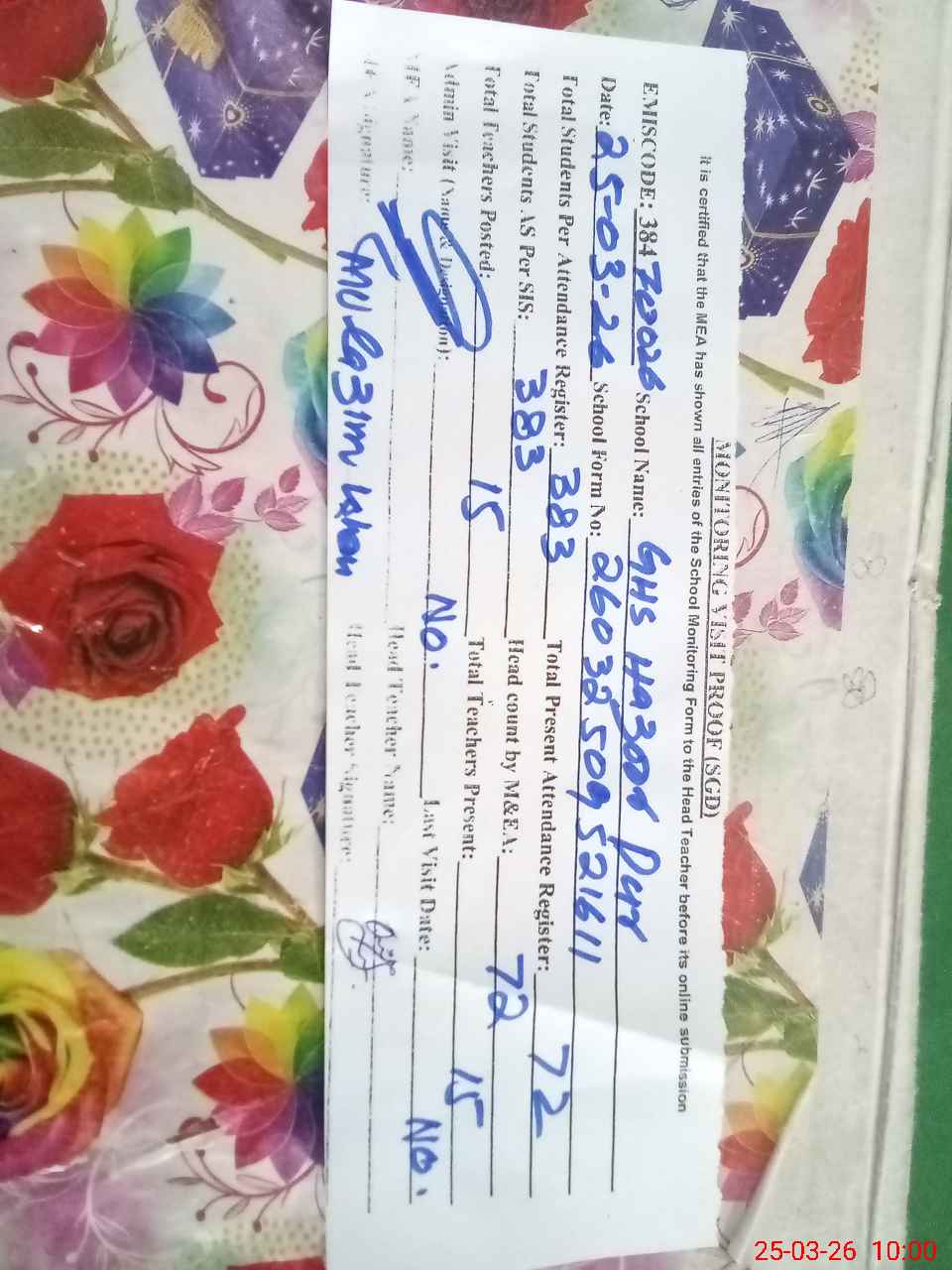 | EMIS Code: 38470026 | Name of School: GHS HAZOOR PUR | |||