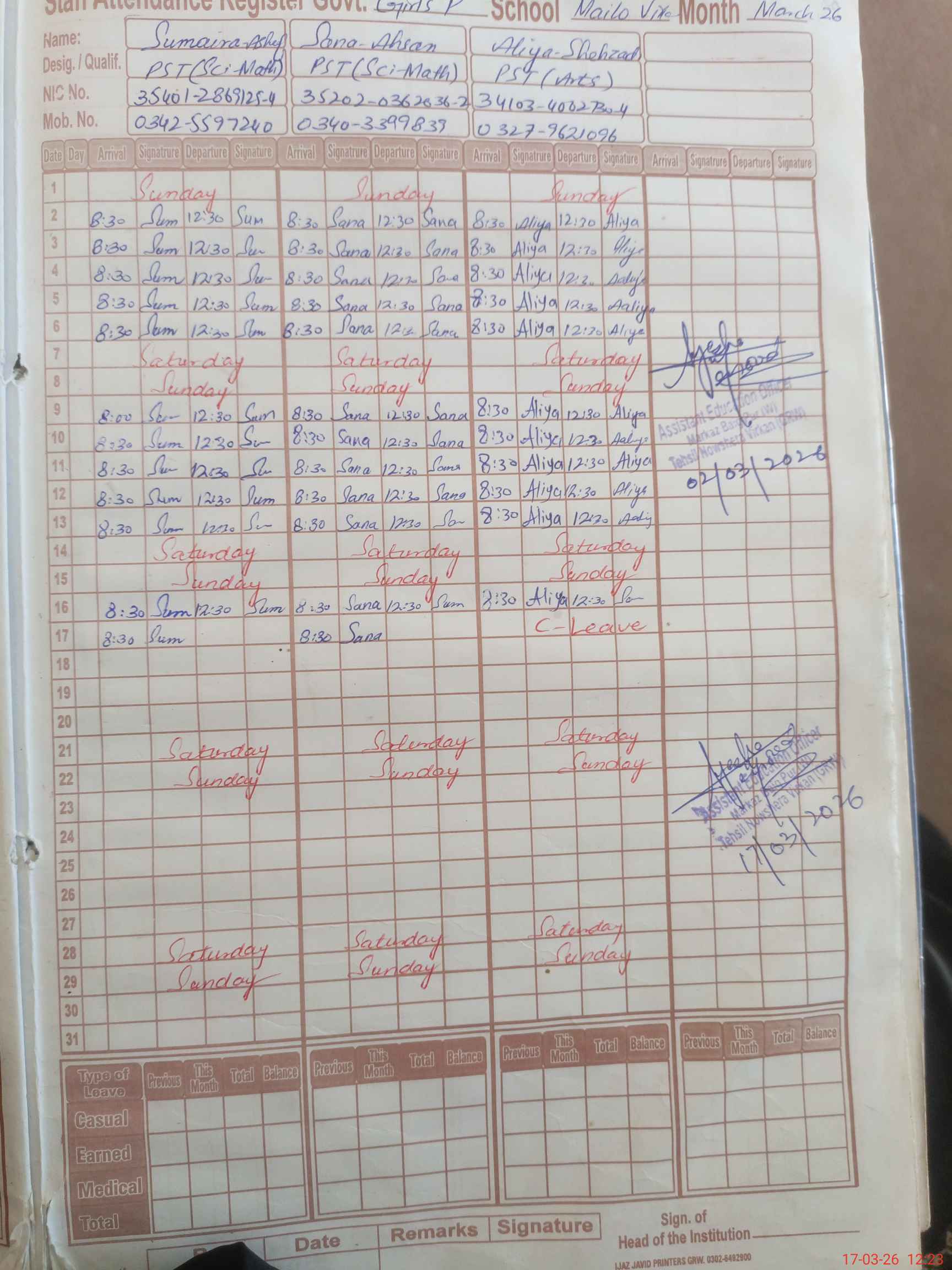 | Name: Su**** As**** Designation: (School Headmaster's/Headmistress's) PST Phone/Cell Number: 03**** |