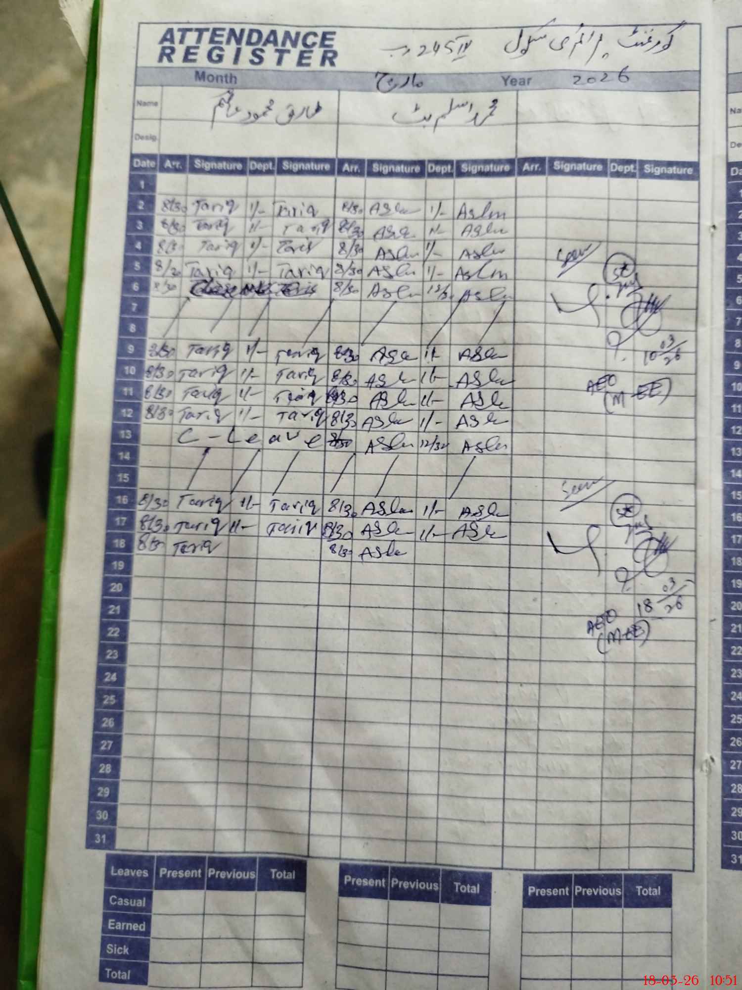 | Leave | Duty | Absent | Maternity | Medical | Ex- Pak |