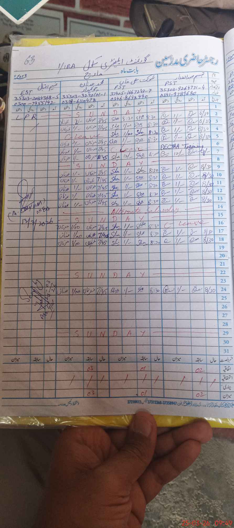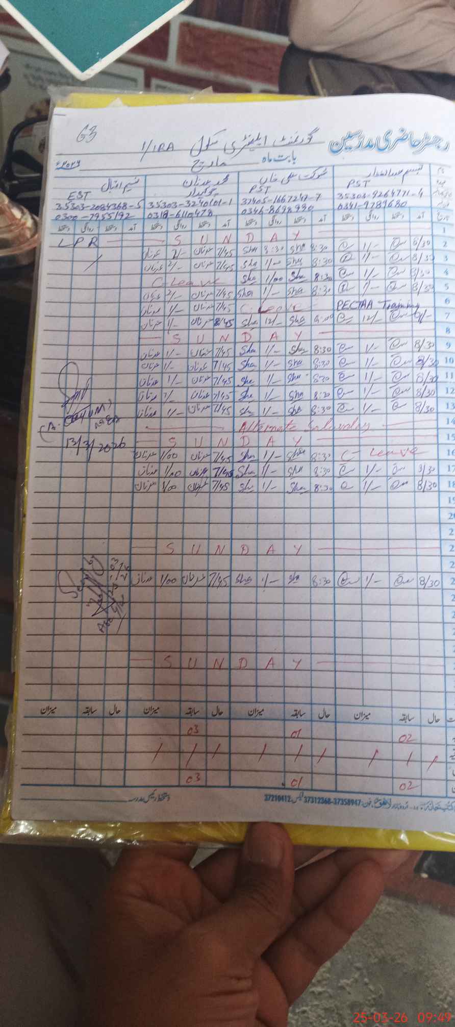 | 37**** | Sh**** Al**** Kh**** | PST Science/Maths | Regular | 0 | 0 | 0 | 0 | 0 | 0 | 0 | 0 | 0 | Casual |