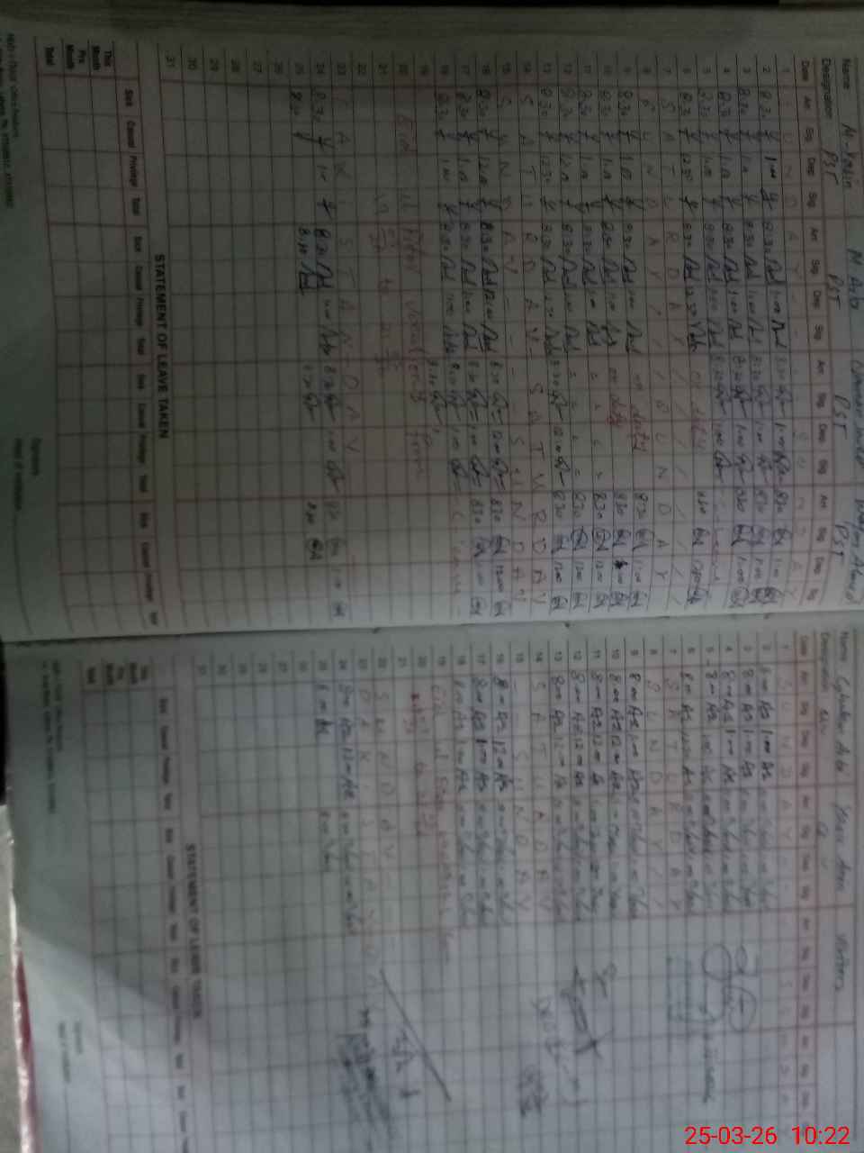 | Leave | Duty | Absent | Maternity | Medical | Ex- Pak |