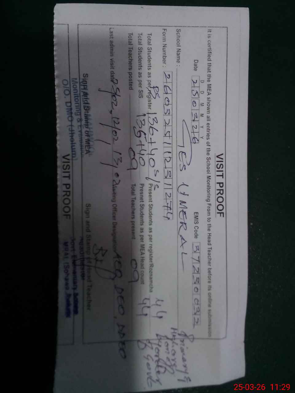 | EMIS Code: 37230032 | Name of School: GES UMRAL | |||