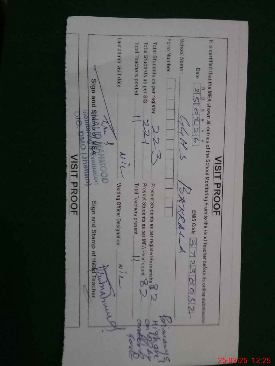 | Certified that this School was Inspected by the Undersigned MEA/DMO Today and the Information Stated Above is as Per Record. | |||||