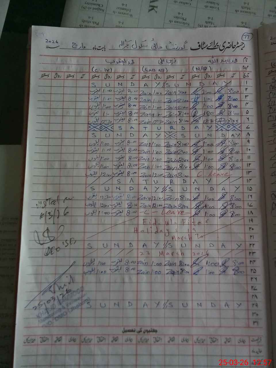 | CNIC | Full Name | Designation | R/C | Absence During Last Calender Month |