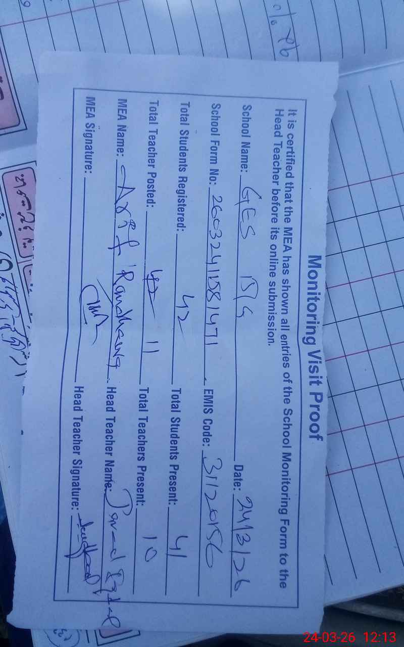 | EMIS Code: 31120156 | Name of School: GES CHAK 15 GAJIANI | |||