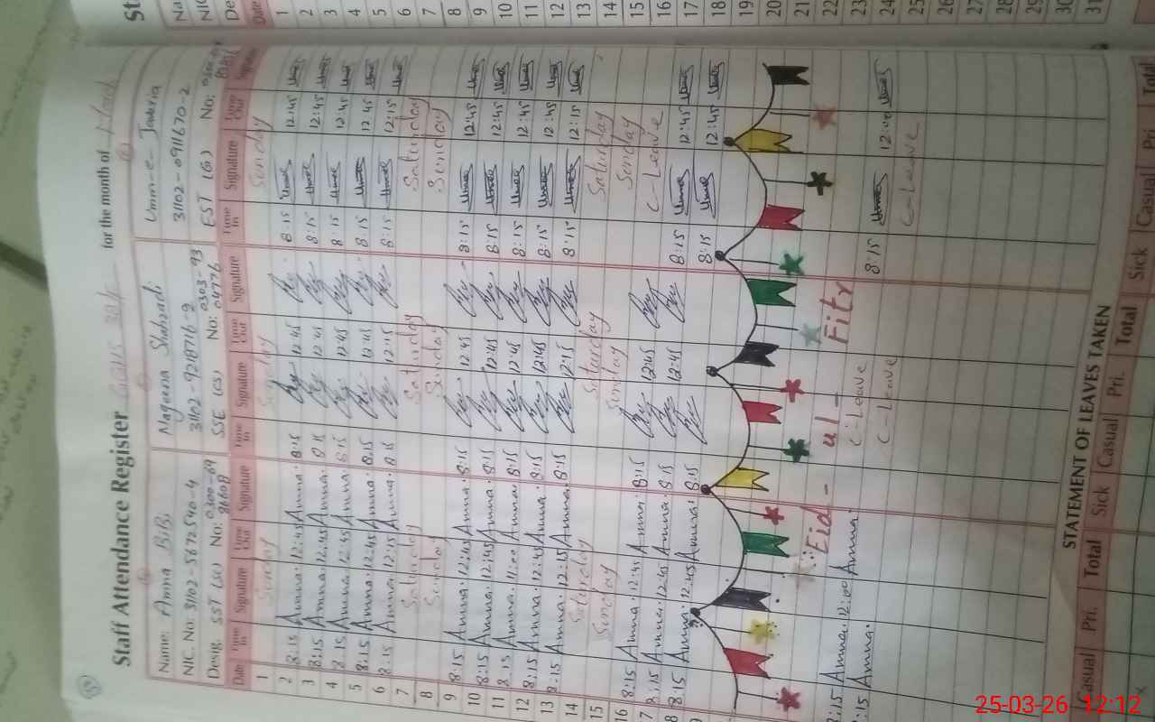 | 31**** | An**** Sh**** | PST Science/Maths | Regular | 0 | 0 | 0 | 0 | 0 | 0 | 0 | 0 | 0 | Absent (Un-Authorized) |