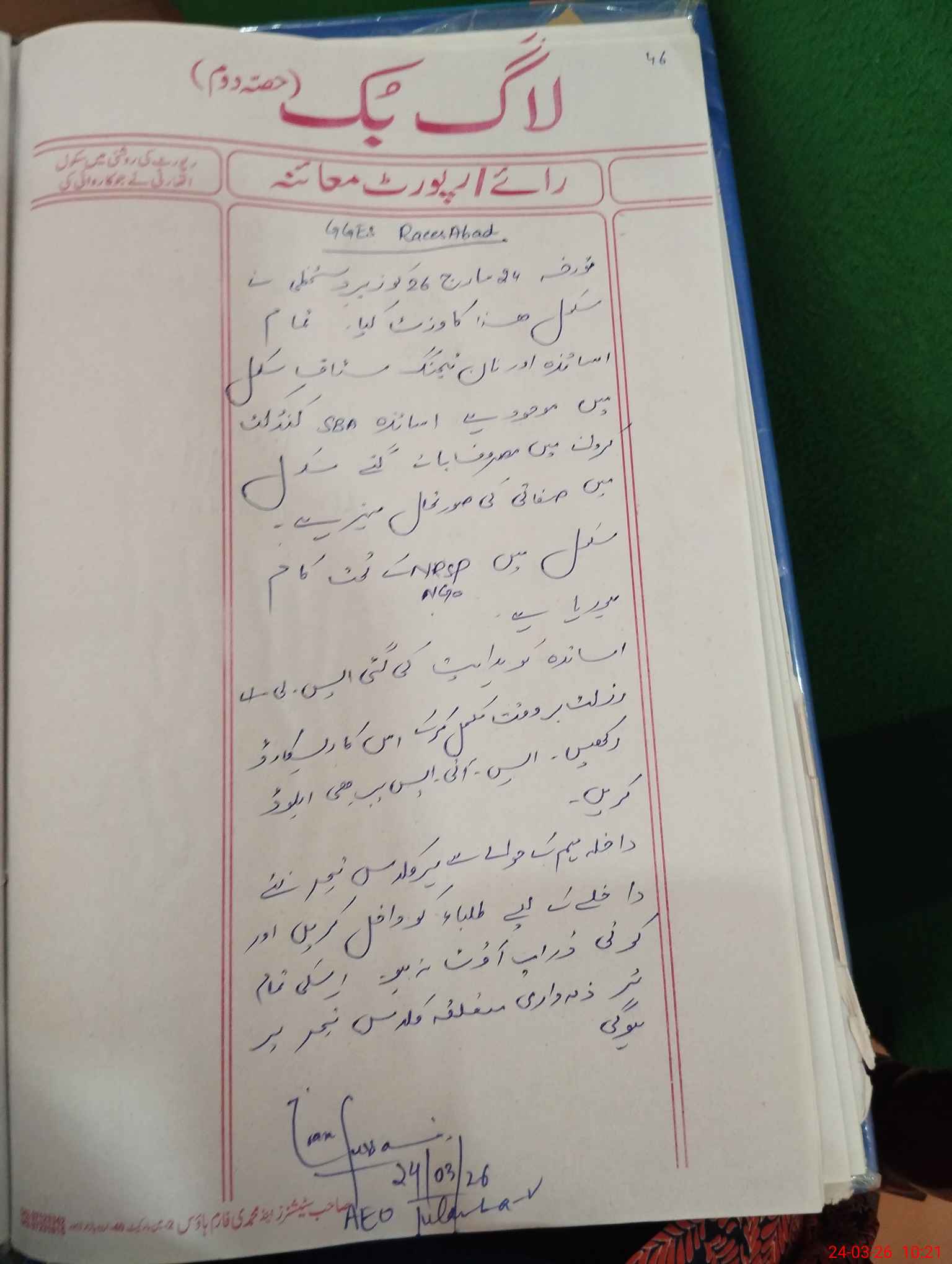 | Certified that this School was Inspected by the Undersigned MEA/DMO Today and the Information Stated Above is as Per Record. | |||||