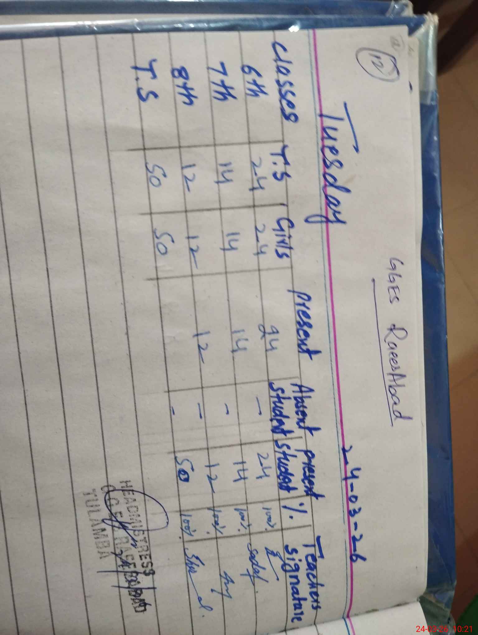 | Total Students Present | 0 | 0 | 0 | 0 | 0 | 0 | 0 | 24 | 14 | 12 | 50 | |||||