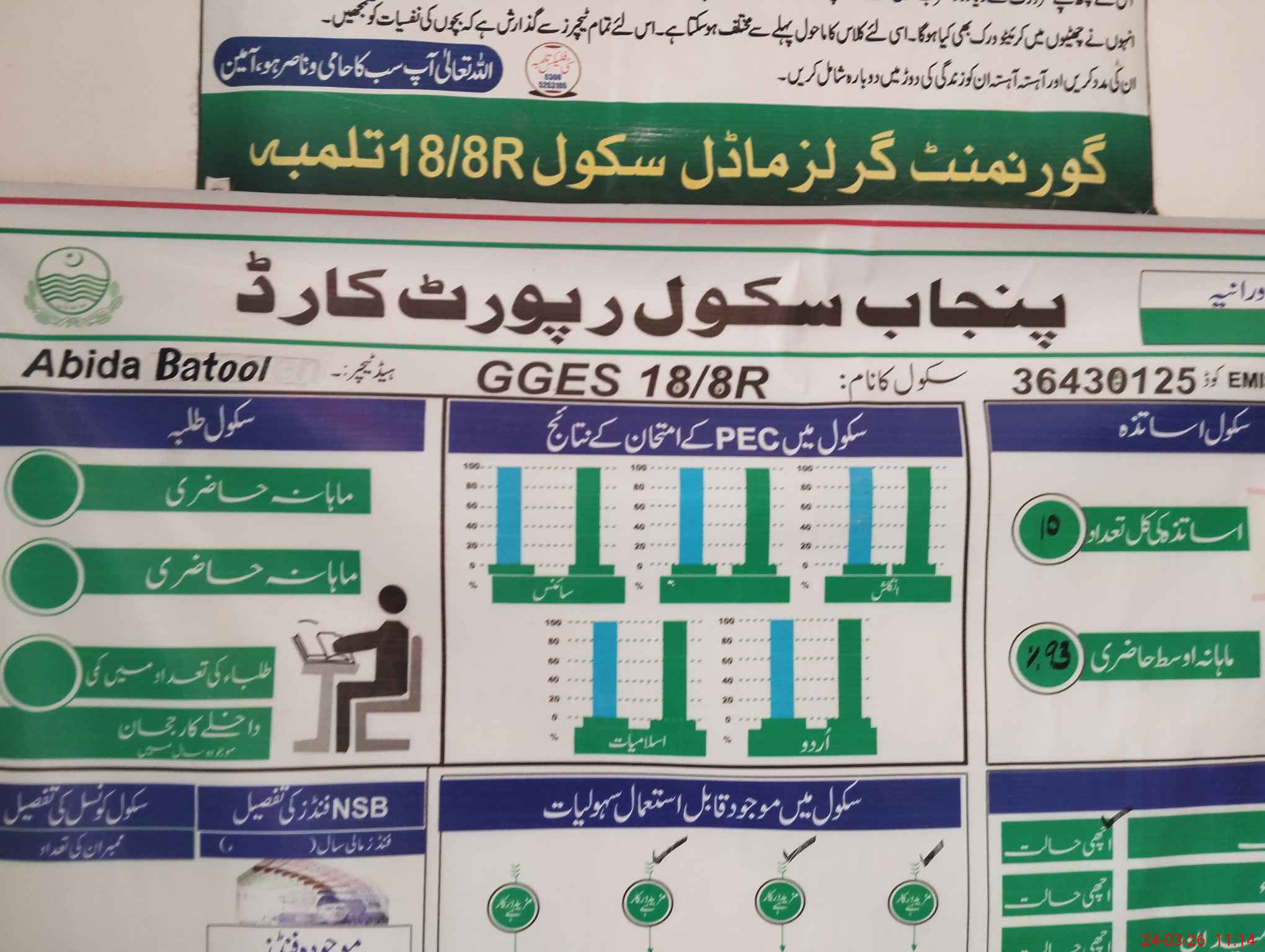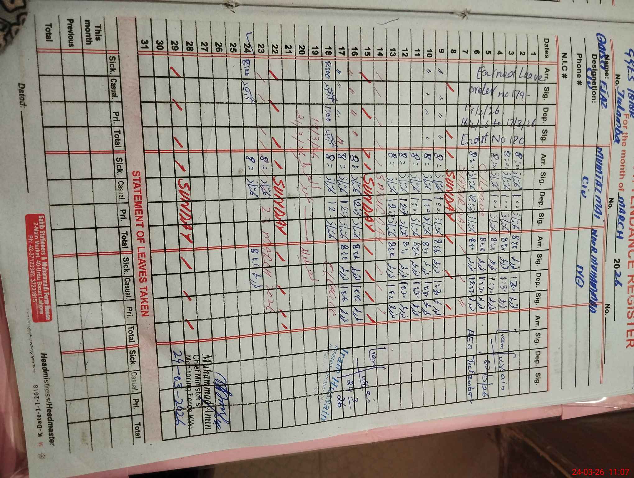 | Name: AB**** BA**** Designation: (School Headmaster's/Headmistress's) S.S.T.(GENERAL) Phone/Cell Number: 03**** |