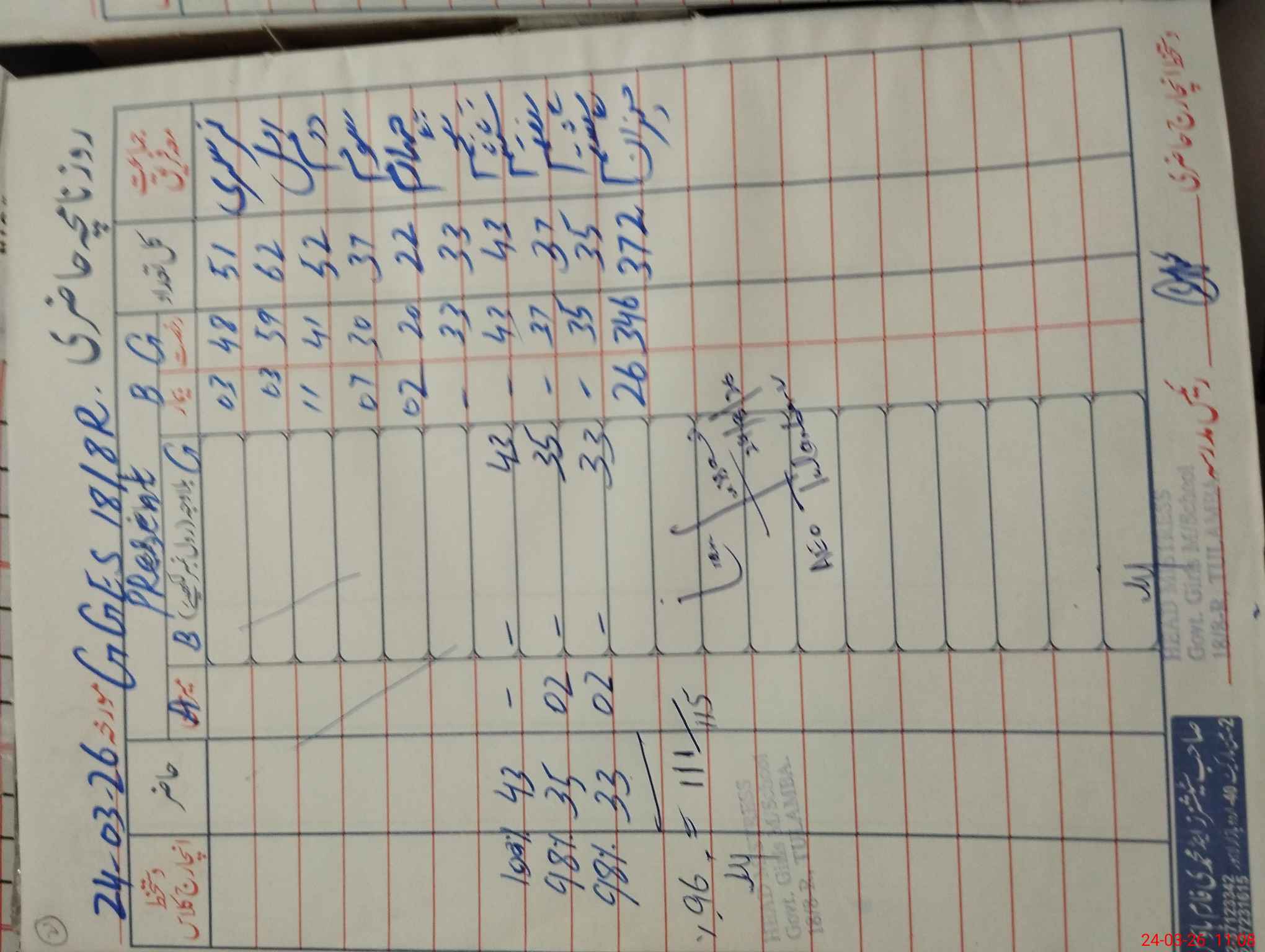 | No. of Students Present - Female | 0 | 0 | 58 | 32 | 30 | 20 | 33 | 43 | 37 | 33 | 334 | |||||