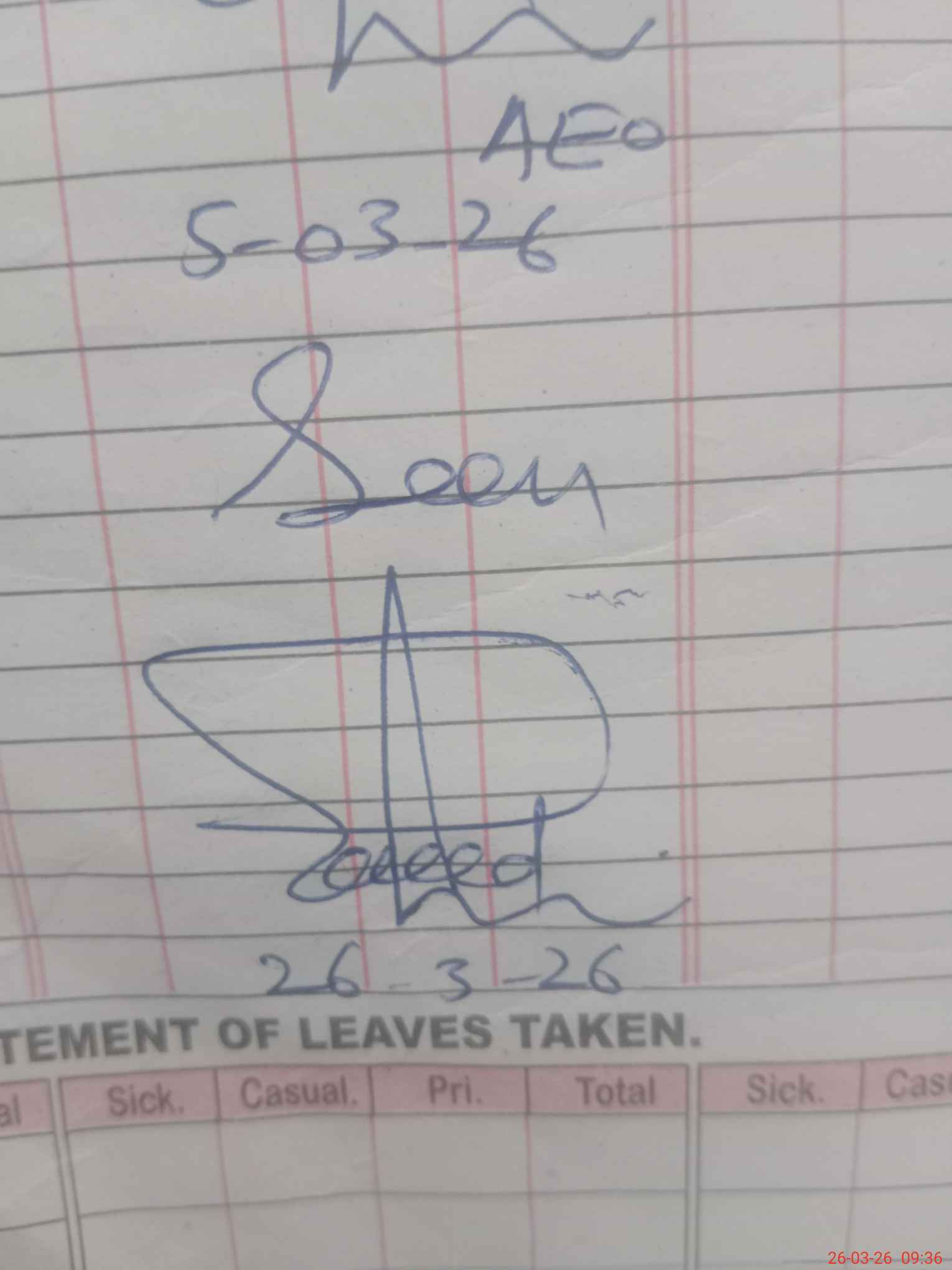 | 35**** | Re**** Is**** | EST Science | Regular | 0 | 0 | 2 | 0 | 0 | 0 | 0 | 0 | 0 | Absent (Un-Authorized) |