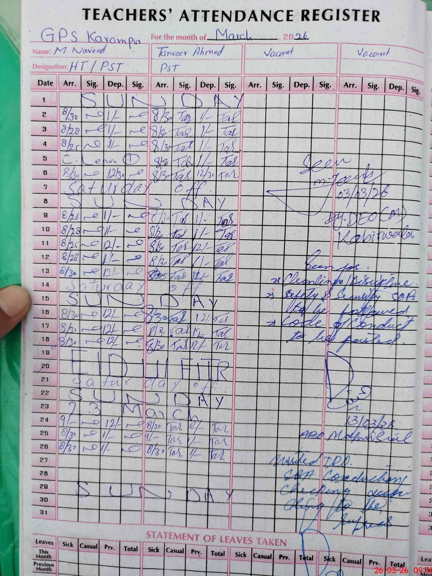| EMIS Code: 36410199 | Name of School: GPS KARAM PUR JOOTA, P/O KUKKAR HATTA, KABIRWALA | |||