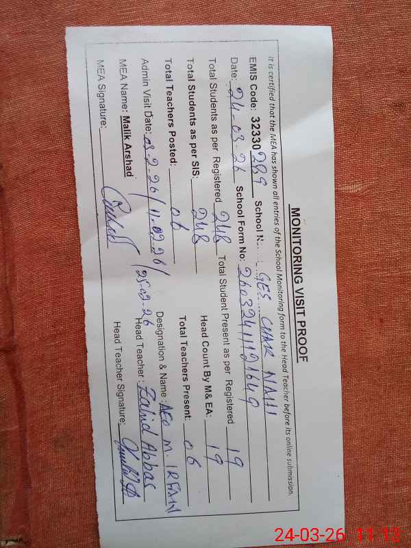 | EMIS Code: 32330289 | Name of School: GES CHAK NAHI | |||
