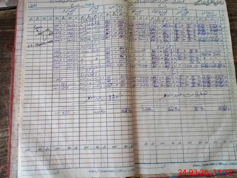 | CNIC | Full Name | Designation | R/C | Absence During Last Calender Month |