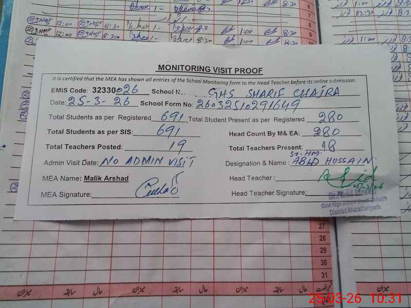 | EMIS Code: 32330026 | Name of School: GHS SHARIF CHAJRA | |||