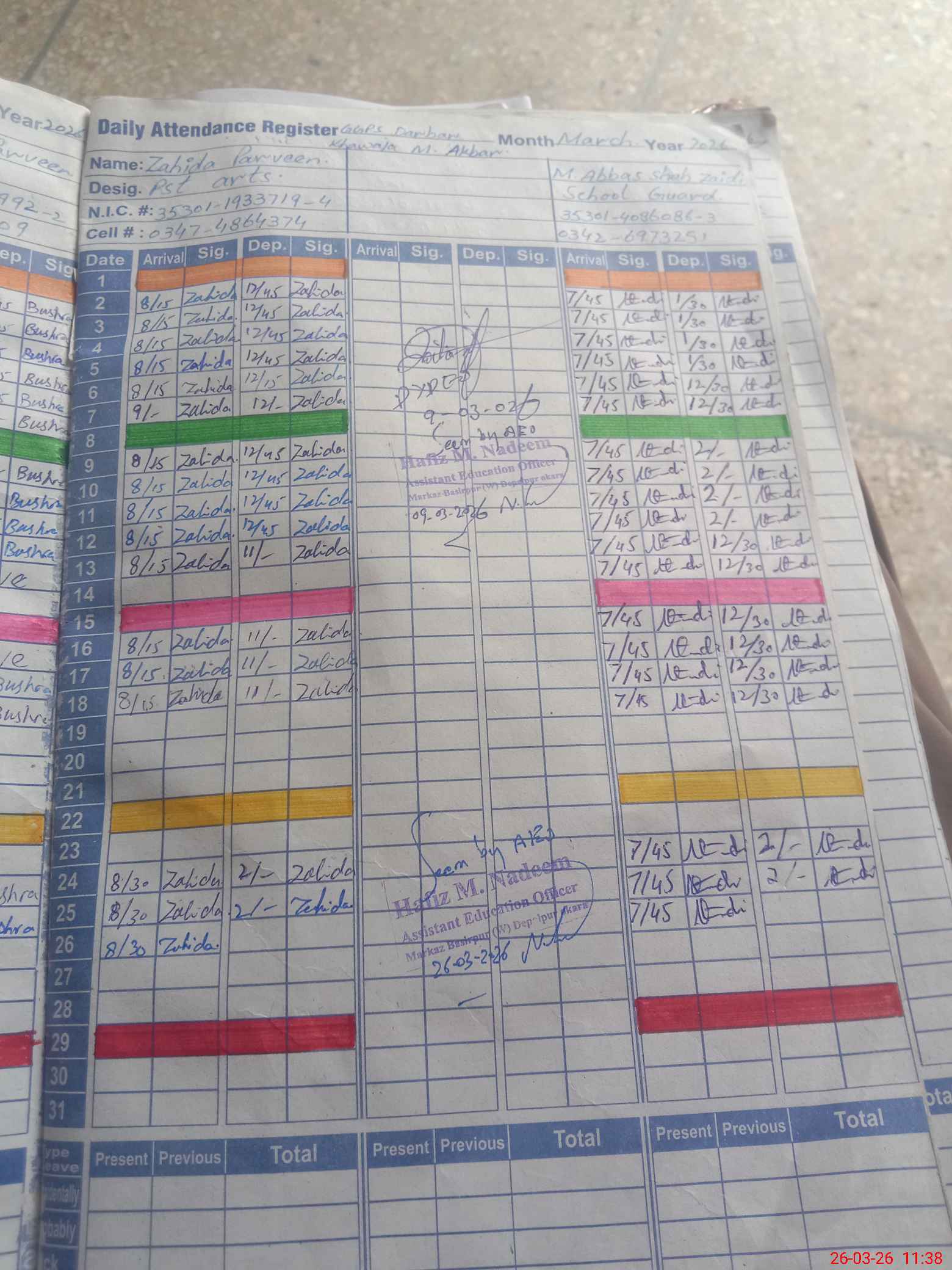 | Name: AZ**** PE**** Designation: (School Headmaster's/Headmistress's) PST Phone/Cell Number: 03**** |